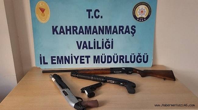 Kahramanmaraş İl Emniyet Müdürlüğü ekiplerinin son bir haftalık çalışmasında; 15 şüpheli şahıs 24 adet silahla birlikte suçüstü yakalandı. Kahramanmaraş İl Emniyet Müdürlüğü'ne bağlı ekiplerin, yoğun şekilde suç ve suçluyla mücadelesi kapsamında, havaya ateş eden, çoğunluğu sabıkalı silah taşıyan ve olaylarda silah kullanmaya yeltenen kişilere fırsat verilmedi.
