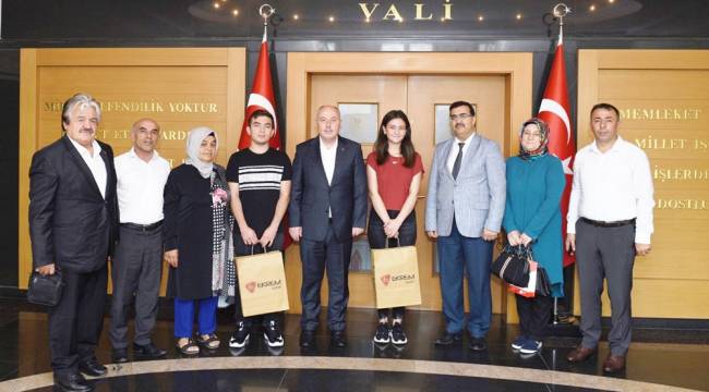 2022 Yükseköğretim Kurumları Sınavı’nda (YKS) Kahramanmaraş il birincisi, sayısal alanda Türkiye 34.sü olan Oğuz Semih Arık ile sayısal alanda Türkiye 283.sü olan Ahu Gürsoy, Vali Ömer Faruk Coşkun’u makamında ziyaret ettiler.