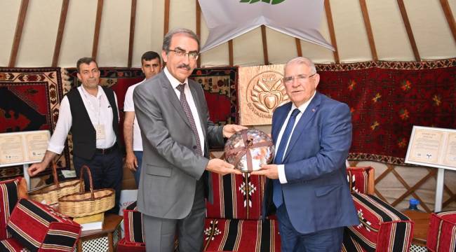 Festivalin ilk gününde Onikişubat Belediyesi’nin çadırında ziyaretçilerle bir araya gelen Başkan Mahçiçek, Malatya Büyükşehir Belediyesi’nin çadırını da ziyaret etti.