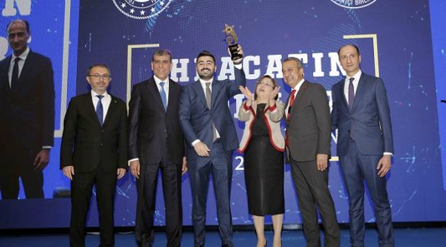 SANKO Dış Ticaret A.Ş’nin ödülü SANKO Holding Yönetim Kurulu Üyesi Yiğitcan Konukoğlu’na Büyükşehir Belediye Başkanı Fatma Şahin tarafından takdim edildi.