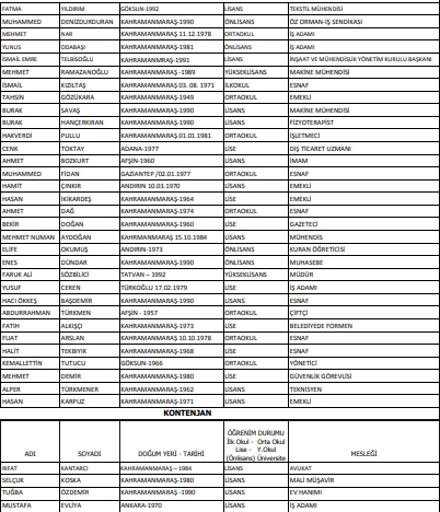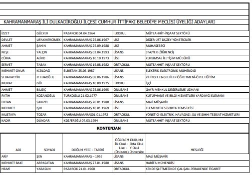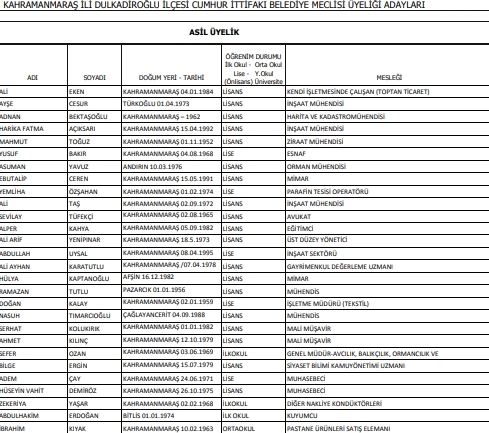 İşte Onikişubat ve Dulkadiroğlu Meclis Üyesi Adaylarının listesi: