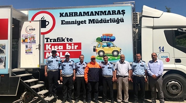 Afet ve Acil Durum Yönetimi Başkanlığı (AFAD) Kahramanmaraş İl Müdürlüğü, Valilik koordinesinde İl Emniyet Müdürlüğü tarafından hayata geçirilen ‘Trafikte kısa bir mola’ projesine destek verdi. Proje kapsamında uygulama noktalarına konulan AFAD’a ait koordinasyon tırında sürücüler trafik kuralları ve afet bilinci hakkında bilgilendirildi.