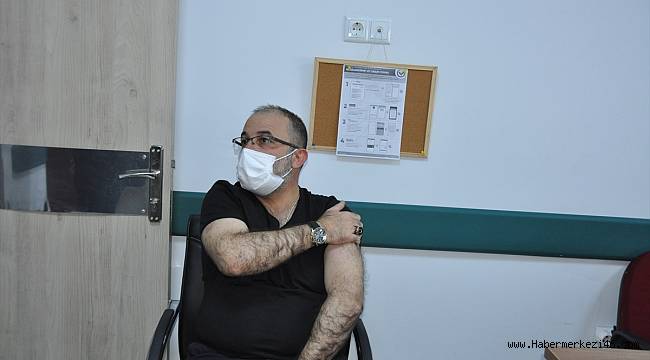 Afşin İlçe Sağlık Müdürlüğüne giden Başkan Güven, burada Kovid-19 aşısını oldu.