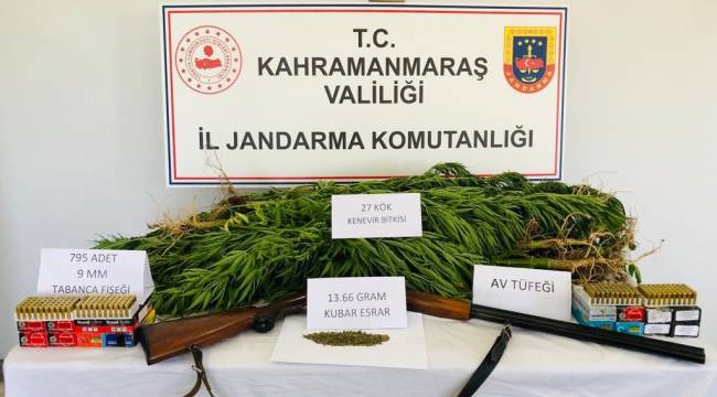 Edinilen bilgiye göre, İlçeye bağlı Armutalan Mahallesinde jandarma ekipleri tarafından yapılan operasyonda bir ikamette ve eklentilerinde yapılan aramada 27 kök kenevir bitkisi, 13,66 gram kubar esrar, 1 adet ruhsatsız av tüfeği ve 795 adet mermi ele geçirildi. Uyuşturucu maddelere el koyan ekipleri, 1 kişi hakkında yasal işlem başlattı.