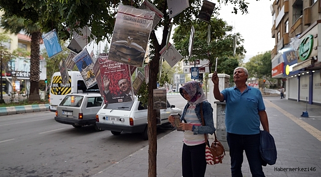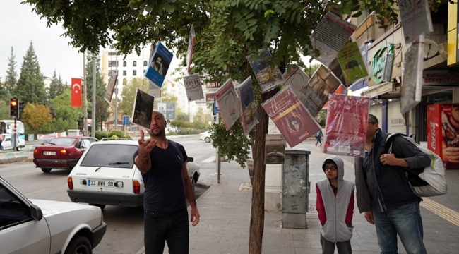 Sabah saatlerinde işlerine gitmek için evden çıkan vatandaşlar, caddelerdeki ağaçlarda kitapların sarktığını görünce şaşkınlıklarını gizleyemediler.