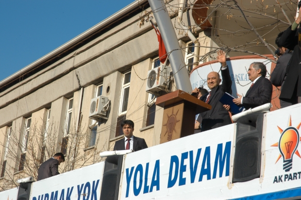 AK Parti Gençlik Kolları Başkanlığı tarafından organize edilen “Gençlik Şöleni’ tam bir siyasi gövde gösterisine dönüştü. Mehteran Takımı eşliğinde marşlarla Merkez Seçim Bürosuna yapılan coşkulu yürüyüşün ardından Şahit Albay İbrahim Karaoğlanoğlu Meydanında halka seslenen Belediye Başkanı ve AK Parti Elbistan Belediye Başkan Adayı Durmuş Küçük, yaptığı konuşmada oldukça sert ifadelere yer verdi. Belediye Eski Başkanı Abdullah Paksoy’u isim vermeden eleştiren ve adeta topa tutan Küçük konuşmasında, “Kendi adıma söylüyorum. Beytülmal yiyen şerefsizdir. İspat edemeyeni Allah’a havale diyorum. Zalime fırsat vermeyin” dedi. Başkan Küçük ayrıca şimdiye kadar hiç açıklanmayan konulara değinerek sert eleştirilerde bulundu.