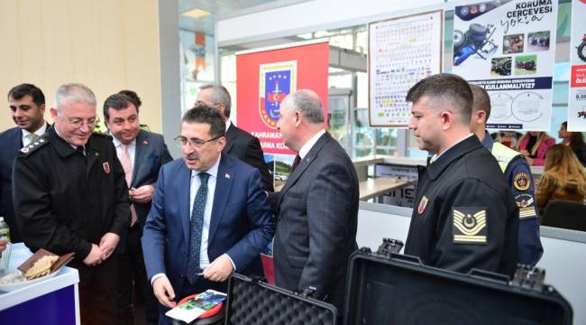 8. Gıda Tarım ve Hayvancılık Fuarında İl Jandarma Komutanı'nın trafik eğitimi faaliyetleri hakkında vatandaşlara bilgi veren stantları ziyaret eden Tarım Bakan Yardımcısı Nihat Pakdil, Kahramanmaraş Büyükşehir Belediye Başkanı Hayrettin Güngör, İl Jandarma Komutanı Tolga Yağan Jandarma personelinden bilgi alarak, çalışmalarında başarılar diledi.