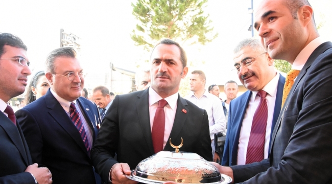 Türkiye Günleri’nde Kahramanmaraş Büyükşehir Belediyesi standını ziyaret eden Cumhurbaşkanı Baş Danışmanı Haydar Ali Yıldız’a Maraş İşi Bakır Kayık Tabak hediye edilerek, Büyükşehir Belediye Başkanı Fatih Mehmet Erkoç’un selamları iletildi.