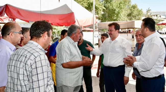 Daha sonra Kahramanmaraş Yaş Sebze ve Meyve Hali’ne geçen Başkan Erkoç, burada esnafları tek tek dolaşarak ziyaret ederek sohbet etti.