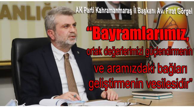 Bayramlar sevginin, saygının ve hoşgörünün pekiştiği, insan ilişkilerinin güçlendiği özel günler olduğunu ifade eden Başkan Görgel, bu bayramın insanlığa ve tüm dünyada barış ve huzur getirmesi temennisinde bulundu.