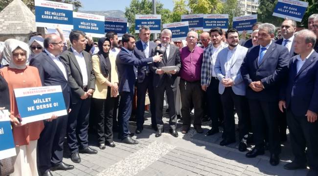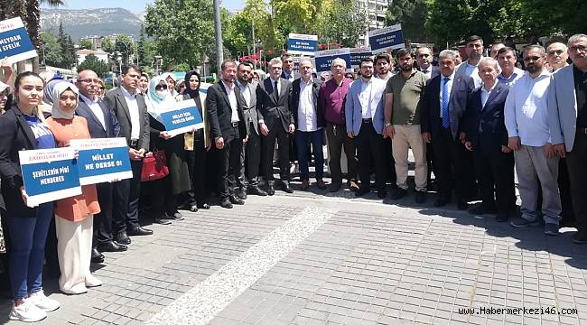 Ulu Cami yanında düzenlenen basın toplantısında AK Parti İl Başkanı Fırat Görgel’e teşkilat mensupları ellerindeki dövizlerle destek verdi.