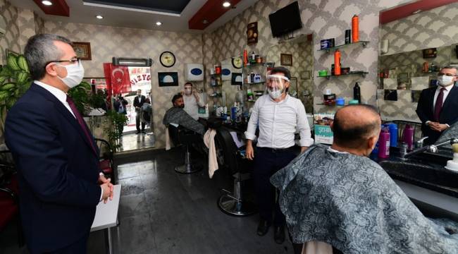 Büyükşehir Belediye Başkanı Hayrettin Güngör, koronavirüs tedbirleri kapsamında 22 Mart’ta geçici süreliğine faaliyetleri durdurulan berber, kuaför ve güzellik merkezlerinin, yeniden açılması ve faaliyete geçirilmesi üzerine, hem destek vermek, hem de önlem kurallarını hatırlatmak için erkek kuaförlerini ziyaret ederek, esnafla ve hemşehrimizle sohbet etti.