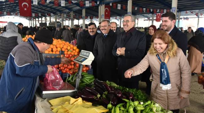 Büyükşehir Belediye Başkanı Hayrettin Güngör, cenaze töreni sonrası ilçe semt pazarını ziyaret ederek esnaf ve vatandaşlarla bir araya geldi. Vatandaşlarla sohbet eden Başkan Güngör, esnafa da hayırlı işler temennisinde bulundu. Ziyarete ilişkin açıklamalarda bulunan Başkan Hayrettin Güngör, “Cenaze töreni sonrası Göksun’da pazar yerini ziyaret ederek hemşehrilerimizle bir araya geldik, sohbet ettik. Esnaf kardeşlerimize hayırlı işler temennisinde bulunduk. Hava soğuktu ancak Göksunlu hemşehrilerimizin güler yüzü ve samimi sohbeti içimizi ısıttı. Her zamanki gibi büyük bir hüsnü kabul gördük. Bizlere gönüllerini açan tüm hemşehrilerimize teşekkür ediyorum” diye konuştu.
