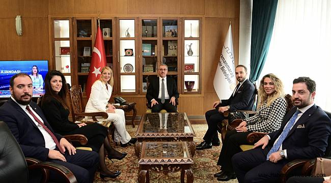 Kahramanmaraş Büyükşehir Belediye Başkanı Hayrettin Güngör, TÜGİAD ve TOBB Kahramanmaraş Genç Girişimciler Kurulu Toplantısı’na katılmak için şehre gelen Türkiye Genç İş İnsanları Derneği (TÜGİAD) Genel Başkanı Nilüfer Çevikel ve yönetimi ile TOBB Kahramanmaraş Genç Girişimciler Kurulu Başkanı Aykut Balcıoğlu’nu makamında ağırladı. Ziyarette misafirlerine Kahramanmaraş’ın milli mücadelesi, İstiklal Madalyası ve kültürel değerlerine ilişkin bilgiler aktaran başkan Güngör, TÜGİAD Genel Başkanı Nilüfer Çevikel’e Kültür Yayınları ve Kahramanmaraş’ın tescilli coğrafi işaretli ürünlerinden Çeyiz Oyma Sandığı hediye etti. TÜGİAD Genel Başkanı Nilüfer Çevikel de nazik ziyaretleri için Büyükşehir Belediye Başkanı Hayrettin Güngör’e teşekkürlerini iletti.