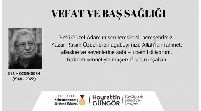Yazar Rasim Özdenören’in vefatı dolayısıyla taziye mesajı yayımladı.