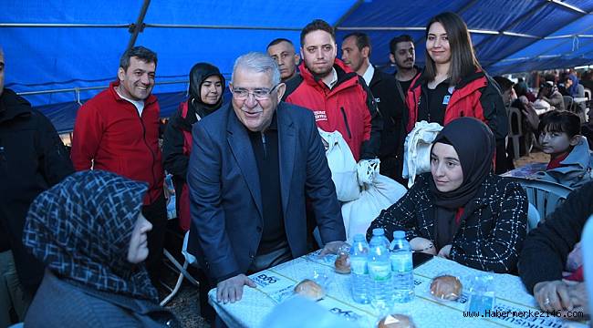 Türkiye Cumhuriyeti’nin gücünün depremin yaralarını sarmaya muktedir olduğunu belirten Onikişubat Belediye Başkanı Hanefi Mahçiçek, deprem şehitlerini rahmet ve minnetle anarak, “Döngele Mahallemizin birbirinden güzel, çok değerli insanları, hepiniz hoş geldiniz. Bu akşam sizlerle beraber soframızı ve ekmeğimizi paylaşıyoruz. Kahramanmaraş’ımız maalesef çok büyük bir afet yaşadı. Belki de dünyada hiç görülmeyen bir depremi yaşadı. Biliyoruz ki mahallemizden şehir merkezinde ikamet eden çok sayıda kardeşimiz vefat etti. Vefat eden kardeşlerimize Allah’tan rahmet diliyorum, mekanları cennet olsun. Yakınlarına da başsağlığı diliyorum. Yaralılarımıza da Cenab-ı Hakk acil şifalar versin. Vefat edenleri geri getirme imkanımız yok maalesef ama yıkılanları Allah’ın yardımıyla yaparız. Bu ülke büyük bir ülke, bu ülke dünyada sözü geçen bir ülke, bu ülke dünyada gündem değiştiren bir ülke. Dolayısıyla endişe etmeyin, yıkılanları yaparız Allah’ın yardımıyla” dedi.