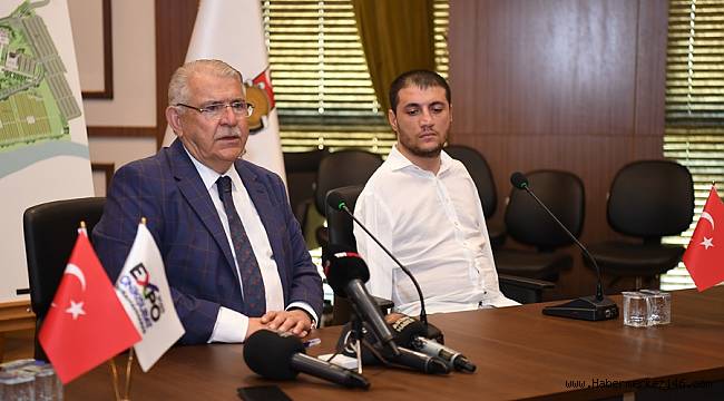 Başkan Mahçiçek, ziyaret sonrası Beytullah Eroğlu’na 3 adet tam altın ile Onikişubat Belediyesi madalyası takdim ederken, Beytullah ise ilk kez bir belediyeden madalya aldığını belirterek, en iyi şekilde saklayacağını ifade etti.