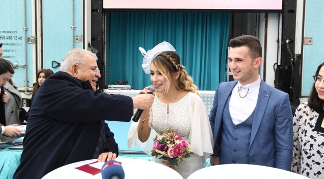 Konuşmanın ardından, 46 çiftin teker teker nikâh akdini gerçekleştiren Başkan Mahçiçek, çiftlere fincan takımının yanı sıra, Vehbi Vakkasoğlu ve Prof. Dr. Nevzat Tarhan’ın evlilik üzerine yazdığı kitaplarını hediye etti.