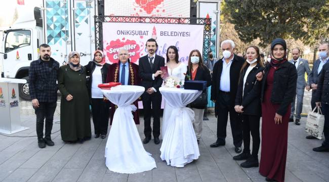 Sevgililer Günü’nü daha da özel bir tarih haline getirmek isteyen 25 çift, aylar öncesinden Onikişubat Belediyesi’nin Toplu Nikâh Töreni’ne katılmak ve hayatlarının en mutlu günlerinden birini ölümsüzleştirmek için randevu aldı. Sevgi, aşk ve huzurun en güzel şekilde yaşandığı Onikişubat ilçesinde ikamet eden çiftler, sosyal belediyeciliğin öncüsü Onikişubat Belediyesi’nin her yıl Sevgililer Günü’nde geleneksel hale getirdiği Toplu Nikâh Töreni ile dünya evine girdi.