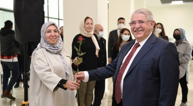 Programın sonunda Başkan Hanefi Mahçiçek ve eşi Ayten Mahçiçek, kadın personellere günün anısına gül hediye etti.