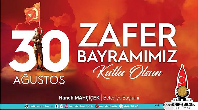Onikişubat Belediye Başkanı Hanefi Mahçiçek, 30 Ağustos Zafer Bayramı ve Türk Silahlı Kuvvetler Günü dolayısıyla mesaj yayımladı.
