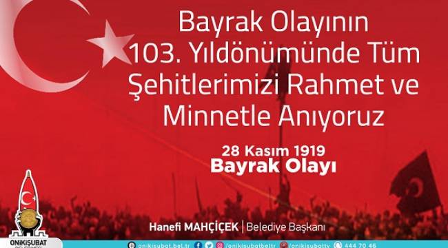 Başkan Mahçiçek, mesajında şu ifadeleri kullandı: “Sözlerimizin başında tarih boyunca istiklale aşık olan Türk milletinin bir mensubu olmaktan onur ve gurur duyduğumu belirtiyorum. ‘Kahraman’ şehrimiz Maraş’ımızın destansı tarihinin en önemli günlerinden biri de hiç kuşkusuz 1919 yılının 28 Kasım’ında gerçekleşen Bayrak Olayı’dır.