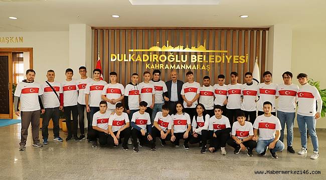 Dulkadiroğlu Kamu Külliyesi önünden gençleri milli maça uğurlayan Dulkadiroğlu Belediye Başkanı Necati Okay, gençlere birer adet de milli formayı hediye etti.