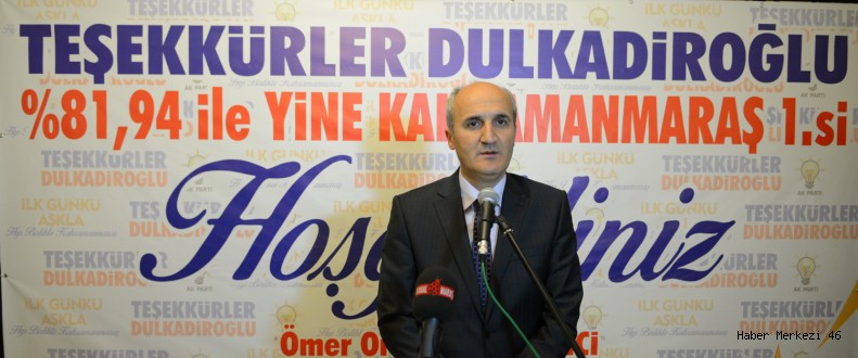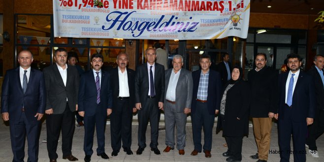 Ak Parti'nin yeni bir rekora imza attığının altını çizen Okay ise yaptığı konuşmada "Daha önceki seçimlerde olduğu gibi 1 Kasım seçimlerinde de Dulkadiroğlu Teşkilatı çok büyük bir başarı elde etti.Bunun neticesinde, Ak Parti'nin Kahramanmaraş'ta kurulduğu günden bu yana yüzde 81.95 oy oranı alarak bir rekora imza attı. Tabi ki de bu rekora ulaşmak için, adeta bir bütün gibi çalıştık. Bundan dolayı gecesini gündüzüne katarak çalışan çok değerli Ak Parti Merkez İlçe Teşkilatı'na ve bu rekor için Dulkadiroğlu İlçesinde yaşamını sürdüren Kahramanmaraşlı hemşerilerime teşekkür ettiğimi söylemek istiyorum." "TÜRKİYE'NİN EN YENİLİKÇİ PARTİSİ HALA AK PARTİDİR" Ak Parti'nin kurulduğu günden buyana görev aşkını kaybetmediğini dile getiren Dulkadiroğlu Belediye Başkanı Necati Okay,"Teşkilatımız ile halkımız arasındaki olan bağlarımızı, yaptığımız ve yapacağımız projelerimizi güzel bir şekilde halka sunduk. Bu büyük başarımızda bununda katkı sağladığını düşünüyorum. Ak Parti Merkez İlçe Teşkilatı'nın büyük başarısının, en önemli sebeplerinden birisi de liderlerinin görev ve sorumluluklarını iyi üstlendiğindendir. Bu liderlere Ak Parti Dulkadiroğlu İlçe Başkanı Ömer Oruç Bilal Debgici, Başbakanımız sayın Ahmet Davutoğlu ve Kurucu Genel Başkanımız ayrıca ilk defa halkımızın seçtiği Cumhurbaşkanımız olan sayın Recep Tayyip Erdoğan en güzel örneklerdir. Ak Parti Teşkilatı olarak 13 yıldır çok iyi icraatlarımız oldu. Dolayısıyla biz gittiğimiz her yerde, hesabını veremeyeceğimiz hiç bir icraatımız olmadı. Bundan dolayı da gittiğimiz her yere başımız dik ve alnımız ak bir şekilde gittik. Türkiye'nin en yenilikçi partisi hala Ak Partidir. Bununla birlikte ileriki günlerde yeni hükümet programı açıklanacak ve bu hükümet programında dahi yeni hedeflerle karşı karşıya kalacağız. Bunlar da bizim 13 yıldır hala yenilikçi ruhumuzu, heyecanımızı ve görev aşkımızı kaybetmediğimizi gösteriyor. Seçimde çok iyi bir başarı elde ettik bu yüzden Dulkadiroğlu İlçesi'nin hedefleri daha da yükseldi. Önümüzde ki seçimlerde bu başarının devamının gelmesi için daha çok çalışmamız gerektiğini bildirmek istiyorum. Son olarak çok değerli çalışanlarımıza, Dulkadiroğlu İlçe sınırları içerinde yaşamını sürdüren Kahramanmaraşlı hemşerilerimize ve gösterdikleri yoğun ilgiden dolayı değerli basın mensuplarına teşekkür etmek istiyorum." dedi.