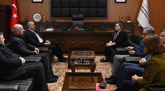 Kahramanmaraş Büyükşehir Belediye Başkanı Hayrettin Güngör, meydana gelen depremler dolayısıyla geçmiş olsun dileklerini iletmek ve şehrin tekrar ayağa kaldırılması noktasında yürütülen çalışmalara ilişkin istişarelerde bulunmak üzere şehre gelen Türkiye Belediyeler Birliği ve Gaziantep Büyükşehir Belediye Başkanı Fatma Şahin’i ağırladı. TBB Genel Sekreteri Dr. Hayri Baraçlı, Dulkadiroğlu, Elbistan ve Pazarcık Belediye Başkanları, KASKİ Genel Müdürü Ahmet Kavak ve TBB yetkililerinin de yer aldığı ziyarette, istişare ve değerlendirme toplantısı gerçekleştirildi.