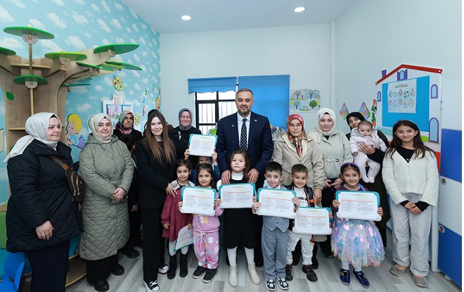 Hem çocukların hem de velilerin beğenisini kazanan, fiziki şartları ve eğitim kadrosu ile hizmet kalitesini her geçen daha yükseklere çıkarın Gündüzbakımevİ’nde, yarıyıl tatiline girilmesi dolayısıyla karne dağıtım programı düzenlendi.
