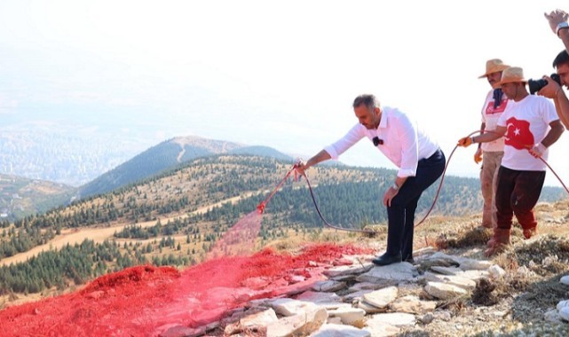 Onikişubat Belediyesi, Kahramanmaraş’ın simgesi Ahır Dağı’nda 40 dönümlük alana işlenen dünyanın en büyük Türk Bayrağı projesinde sona geldi. Türkiye Harp Malulü Gaziler Şehit Dul ve Yetimler Derneği Kahramanmaraş Şubesi üyeleri, şehit ve gazi aileleriyle birlikte dev Türk Bayrağı’nın son boyasını yaparak projeyi taçlandırdı.
