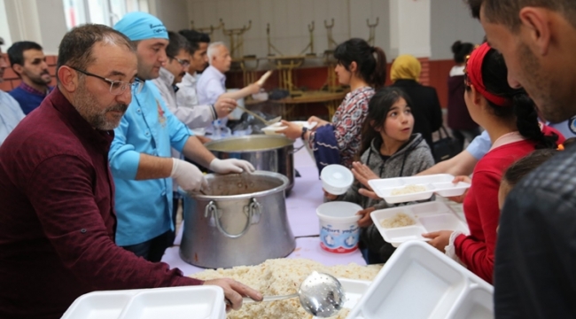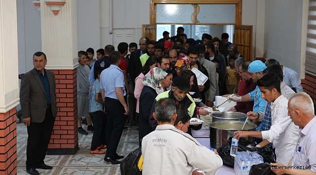 Belediye Düğün Salonunda kurulan iftar evine gelen vatandaşlar, akşam ezanının okunmasıyla ilk iftarı açmanın mutluluğunu yaşadı.
