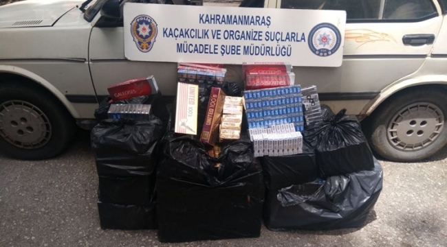 Kahramanmaraş Emniyet Müdürlüğü kom Şube Müdürlüğüne bağlı polis ekipleri Gaziantep ilinden Kahramanmaraş'a kaçak sigara getirdiği tespit edilen 32 plakalı bir araca havaalanı kavşağında operasyon yaptı. Araçta Mehmet B. ve Ercan Ö. İsimli şahıslar olduğu yakalandı. Araç içerisinde yapılan aramada 3150 paket gümrük kaçağı sigara ele geçirildi.
