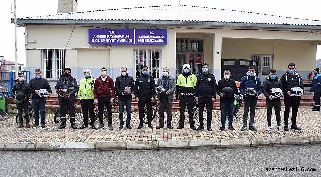 teşkil etmesini sağlamak amacıyla motosiklet kaskları vatandaşlarımıza hediye