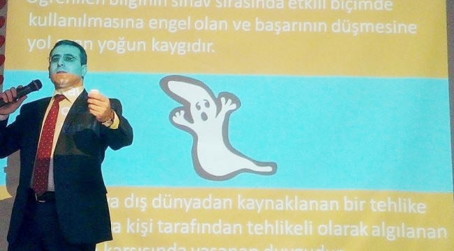 seminerde, öğrencilere Yükseköğretim Kurumları Sınavı (YKS) sistemi ile sınav kaygısının önüne nasıl geçilebileceği anlatıldı.Yükseköğretim