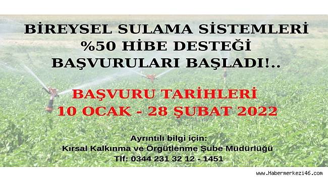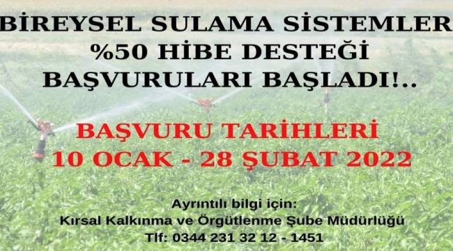 bireysel sulama sistemlerinin alımına %50 hibe desteği verilmektedir.