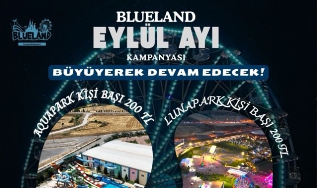 Bölgenin en büyük eğlence merkezi BlueLand, Ağustos ayında yalnızca Pazartesi ve Salı günleri geçerli olan kampanyasını, ziyaretçilerin yoğun ilgisi üzerine Eylül ayında hafta içi her güne yaydı.Hafta içi her gün, BlueLand Kart’a 200 TL yükleme yapan misafirler, Go-Kart, Karnaval ve Simülatör makineleri hariç tüm makine ve oyuncakları sınırsız kullanabilecek.