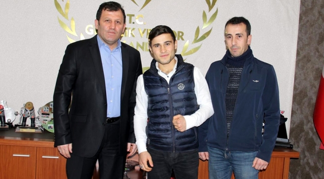 Başarılı Sporcu Halil Bucak ve Antrenörü Ömer Köse Şampiyona dönüşü Gençlik ve Spor İl Müdürü Ali İhsan KABAKCI’yı makamında ziyarettiler. İl Müdürü Ali İhsan Kabakcı elde ettiği başarıdan dolayı Halil Bucağı’ı tebrik ederek Başarılarının devamın temenni etti. Ziyaret sonunda hatıra fotoğrafı çektirildi. Kabakcı Başarılı Boksöre Spor malzemesi hediye etti.