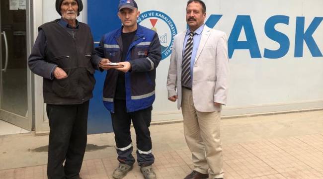 Kahramanmaraş Büyükşehir Belediyesi’nde temizlik görevlisi olarak çalışan Durdu İmalı, Türkoğlu ilçesi Mahir Ünal Caddesi’nde çevre temizliği esnasında yerde içerisinde para dolu cüzdan buldu. Personel Durdu İmalı’nın durumu yetkili amirlerine bildirmesiyle ekipler cüzdanı sahibine ulaştırmak için derhal harekete geçti. İçerisinde bir miktar para ve kartların olduğu cüzdanın 75 yaşındaki Mustafa Demir’e ait olduğu tespit edilerek cüzdan sahibine ulaştırıldı.