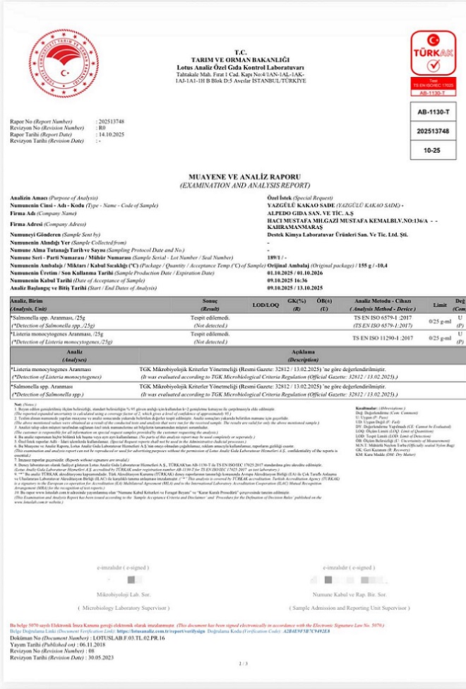 “Son günlerde bazı basın organlarında yer alan laboratuvar sonuçlarıyla ilgili iddialar tamamen asılsızdır. Bahsi geçen ürünler tamamen ihracat amacıyla üretilmiştir. Üretim sonrasında kendi laboratuvarımızda yapılan analizlerde sonuçlarımız uygundu.