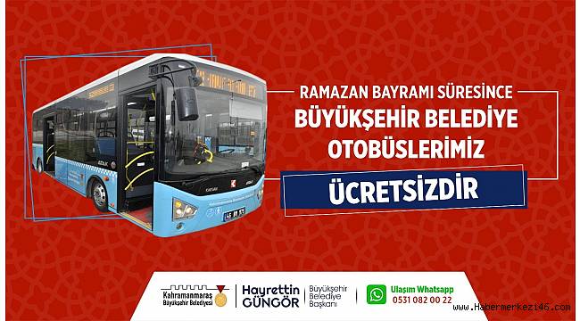 Kahramanmaraş Büyükşehir Belediyesi, Ramazan Bayramı dolayısıyla anlamlı bir çalışmayı daha hayata geçiriyor. Bu kapsamda alınan karar doğrultusunda Ramazan Bayramı boyunca Büyükşehir Belediyesi’ne ait otobüsler ücretsiz ulaşım hizmeti verecek.