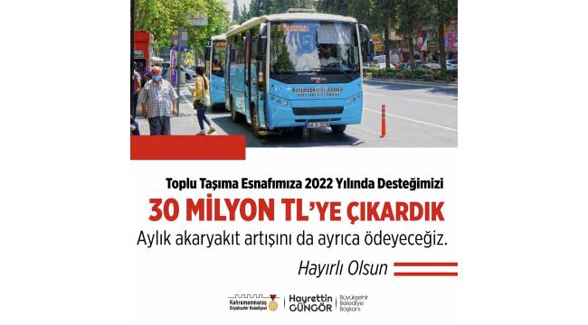 Kahramanmaraş Büyükşehir Belediyesi, önemli bir dayanışma adımı daha atarak, Özel Halk Otobüsü esnafına yönelik gelir desteğindeki yeni rakamı açıkladı. Müjdeyi veren Başkan Güngör, “Pandemi sürecinde kısıtlılıklar sebebiyle yolcu taşıma kapasiteleri yarı yarıya düşen Özel Halk Otobüsü esnafımıza 26 Milyon TL’lik destek sağlamıştık. Bu desteğimiz bu yıl da sürecek. 2022 yılı içerisinde esnafımıza 30 Milyon TL destek sağlıyoruz. Aylık akaryakıt artışını da ayrıca karşılayacağız. Bu çalışmamızla birlikte, Onikişubat, Dulkadiroğlu, Elbistan ve Afşin ilçelerimizde faaliyet gösteren toplu taşıma esnafımıza yönelik toplam gelir desteğimiz 56 Milyon TL’yi buldu” ifadelerini kullandı. Pandeminin ilk gününden bu yana önemli dayanışma adımlarının atıldığını vurgulayan Başkan Güngör, yeni desteğin esnafa hayırlı olmasını diledi.