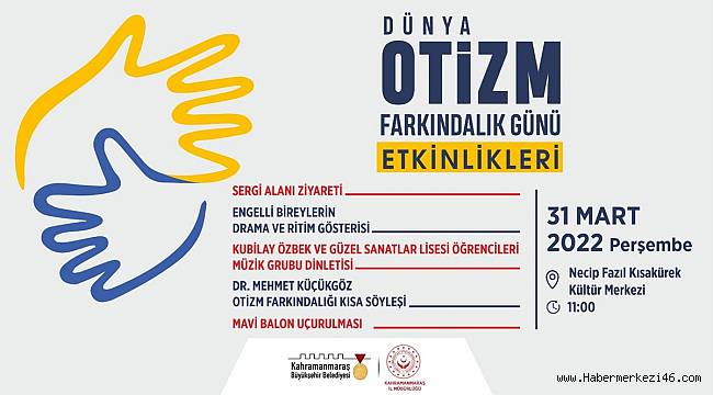 Kahramanmaraş Büyükşehir Belediyesi, sosyal belediyecilik çalışmalarına aralıksız devam ediyor. Bu kapsamda, Büyükşehir Belediyesi tarafından, Dünya Otizm Farkındalık Günü dolayısıyla 31 Mart Perşembe günü (yarın) çeşitli etkinlikler düzenlenecek.