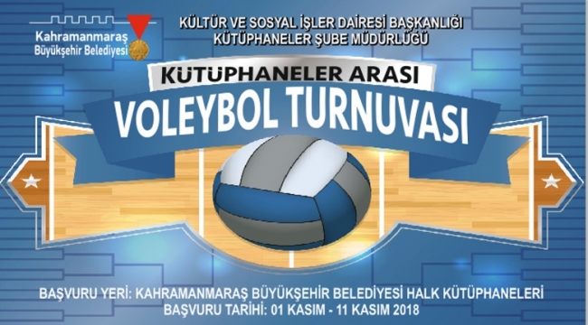 Kahramanmaraş Büyükşehir Belediyesi Kütüphaneler Şube Müdürlüğü’nce organize edilecek voleybol turnuvasına katılmak isteyenler için başvuru 1-11 Kasım 2018 tarihleri arasında gerçekleştirilecek.