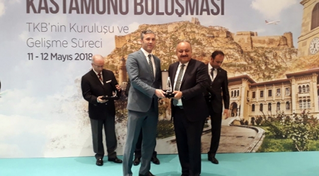 Kahramanmaraş Büyükşehir Belediyesi’nin ödülünü Araştırma Geliştirme ve Dış İlişkiler Şube Müdür Yardımcısı Muhammet Beytullah Gonce, Kastamonu Belediye Başkanı Tahsin Babaş’ın elinden aldı.