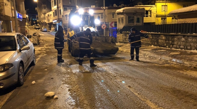 Öte yandan aşırı kar yağışından dolayı grup yollarında karla mücadele çalışmalarının yanı sıra kar temizliği yapılan yollarda da aşırı buzlanmaya karşı tuzlama çalışmaları da yine ekipler tarafından sürdürülüyor.