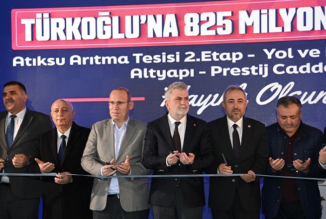 Türkoğlu Atıksu Arıtma Tesisi’nde düzenlenen törende; Atıksu Arıtma Tesisi 2. Etap projesi, altyapı ve yol yatırımları, 4 köprü, Şerife Tansel Taziye Evi Yenileme Projesi ile Katı Atık Transfer yatırımlarının toplu açılışı yapıldı.