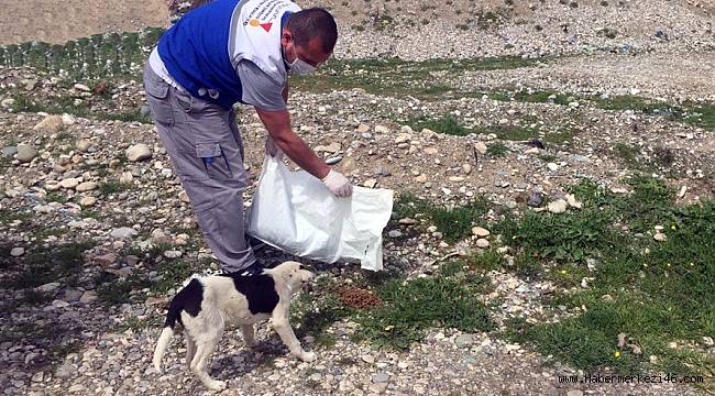 şehrin muhtelif bölgelerine sokak hayvanları için yem bırakıldı.