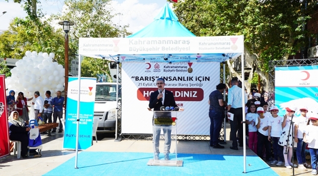 Daha sonra kürsüye gelen Kahramanmaraş Büyükşehir Belediyesi Genel Sekreteri Züver Çetinkaya, yaptığı konuşmada: “Belki de bugün en çok ihtiyaç duyduğumuz bir kavram adına bugün buradayız. Dünyanın dört bir tarafında savaşlar olurken Dünya Barış gününü kutlamak bilmiyorum ne kadar sağlıklı ne kadar doğru ama çevremize baktığınız da özellikle ülkemizin etrafındaki Suriye, Irak bölgelerine baktığınızda böyle bir savaş ortamında en çok ihtiyaç duyduğunuz şeylerden birisi de barış ortamı. Kızılay Şube Başkanlığımıza böylesi bir günde böyle bir organizasyonda bizimle beraber olmalarından dolayı teşekkür ediyorum. Bugünü çocuklarla beraber kutlamanın daha manidar olduğunu düşünüyorum. Çünkü gelecek onların ve biz onlara bugün ki bu programla beraber barış dolu bir gelecek temennisi içerisindeyiz. Birleşmiş Milletler bugünü Dünya Barış Günü olarak ilan etmiş 1981 yılında ama aslında bizim kendi kültürümüzde kendi dinimiz hatta İslam kelimesinin manası içerisin de kelime anlamı içerisinde zaten barış kelimesi yer almakta. Biz özellikle Kahramanmaraşlılar olarak genelde de İslam Dünyası olarak zaten barış kelimesi ile kendimizi tanımlıyoruz. Dolayısıyla barış bugün birilerinin içini boşaltarak sadece ideolojik anlamlar yükleyerek ve yahut da bir takım maksatlarını yerine getirmek için kullandığı bir kavram değil. Bizim açımızdan Müslüman olmanın gereği barış kendi inancımızın gereği olan bir kavram. Özellikle de biz Türk milleti olarak Dünya arenasında yer aldığımız günden bu tarafa barış için çalışan bir milletiz. İşte görüyorsunuz son dönemde hatta birkaç gün içerisinde İdlib konusunda yapılan görüşmeleri gördüğünüz zaman görüyoruz ki barıştan yana olan ve bu tavrını her aşamada, her ortamda Dünyaya gösteren tek ülke Türkiye. Herkes bir yerlerden parsel toplama peşindeyken kendi ülkelerinin menfaatleri peşindeyken biz o bölgede yaşayan insanların barış içinde yaşaması için bütün çabamızı bunun üzerine kurmuşuz. Bu da bizim milletimize, ülkemize, inanç değerlerimize en yakışan şey olduğunu düşünüyorum. Tekrar bugünün aslında bugünle kalmaması yılın 365 gününün barış içerisinde geçmesi dilek ve temennisi ile bugünü kutluyorum hayırlara vesile olmasını diliyorum” dedi.
