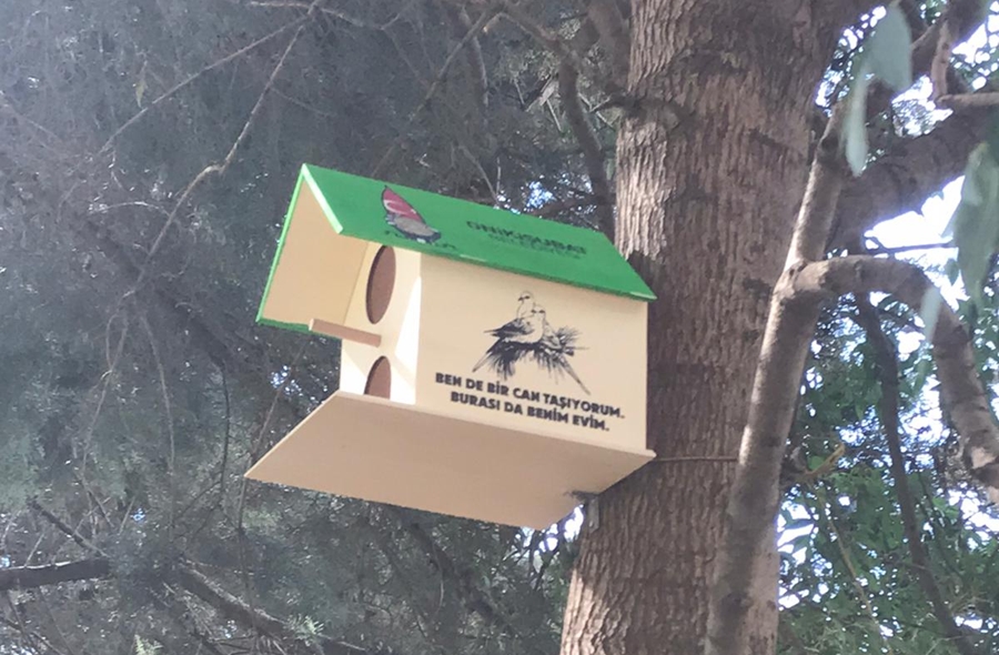 yerleştirildiği ve dağıtıldığı ilçe genelinde, 700 kuş evi de ağaçlara